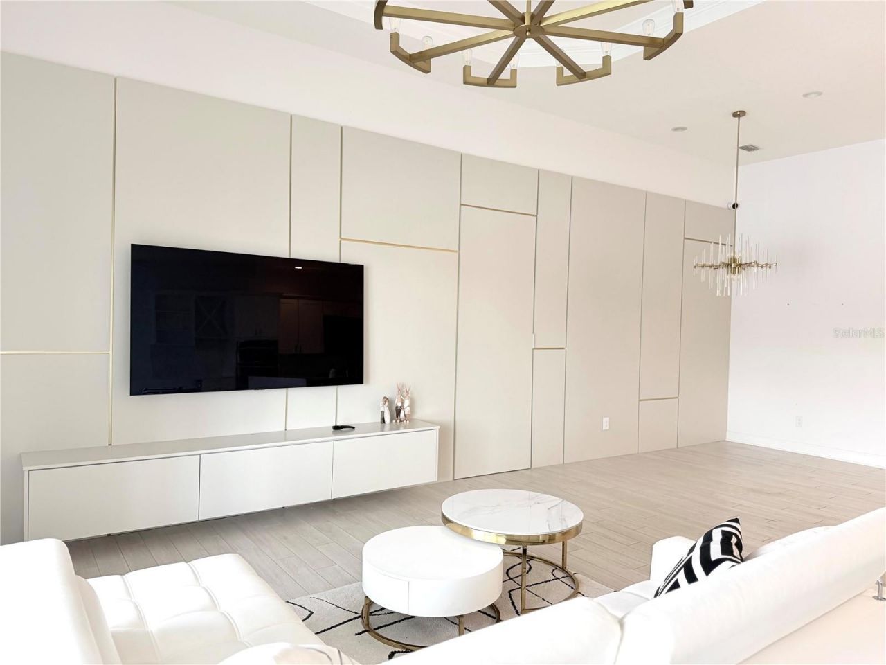 Luxury Water View Home for rentLive in style in this stunning Orlando-area estate featuring designer interiors, soaring ceilings, and gold accents throughout. The chef's kitchen boasts a quartz waterfall island, double wall ovens, and a wine cooler. The spa-like primary bath includes a freestanding soaking tub and frameless glass shower.Outside, enjoy a screened waterfront lanai with a pool, in-water sun loungers, a raised spa, and a fully equipped outdoor kitchen - perfect for year-round entertaining.Each bedroom features custom wallpaper, accent walls, and unique designer lighting. 2-car garage included.