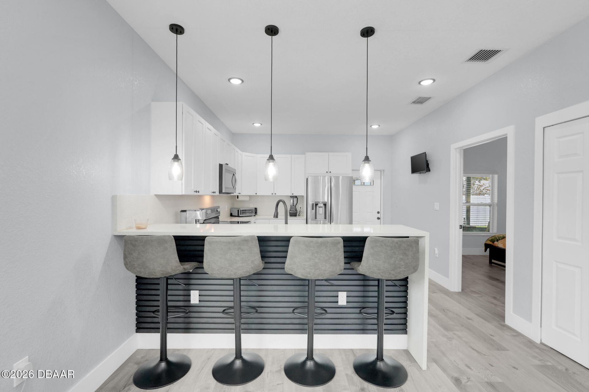 Perfection. Elegance. Location. An exceptional opportunity to own a newer, FULLY FURNISHED duplex that offers both flexibility and income potential. Ideally located near one of the area's most well-known coastal destinations, this thoughtfully designed property features two spacious ground-level units and a beautifully finished studio on the second floor. Each unit includes a fully equipped kitchen with stainless steel appliances and quartz countertops, combining style and functionality. The second-story unit opens to a front balconyâ???''perfect for relaxing evenings and enjoying city views. The property showcases carefully constructed details throughout, including a custom granite-finished driveway that leads to a private courtyard entrance and a fenced backyard with gated access. Additional features include an indoor wet bar located in the garage, an outdoor kitchen designed for modern entertaining, individual utility metering for each unit, and instant hot water systems serving all l
