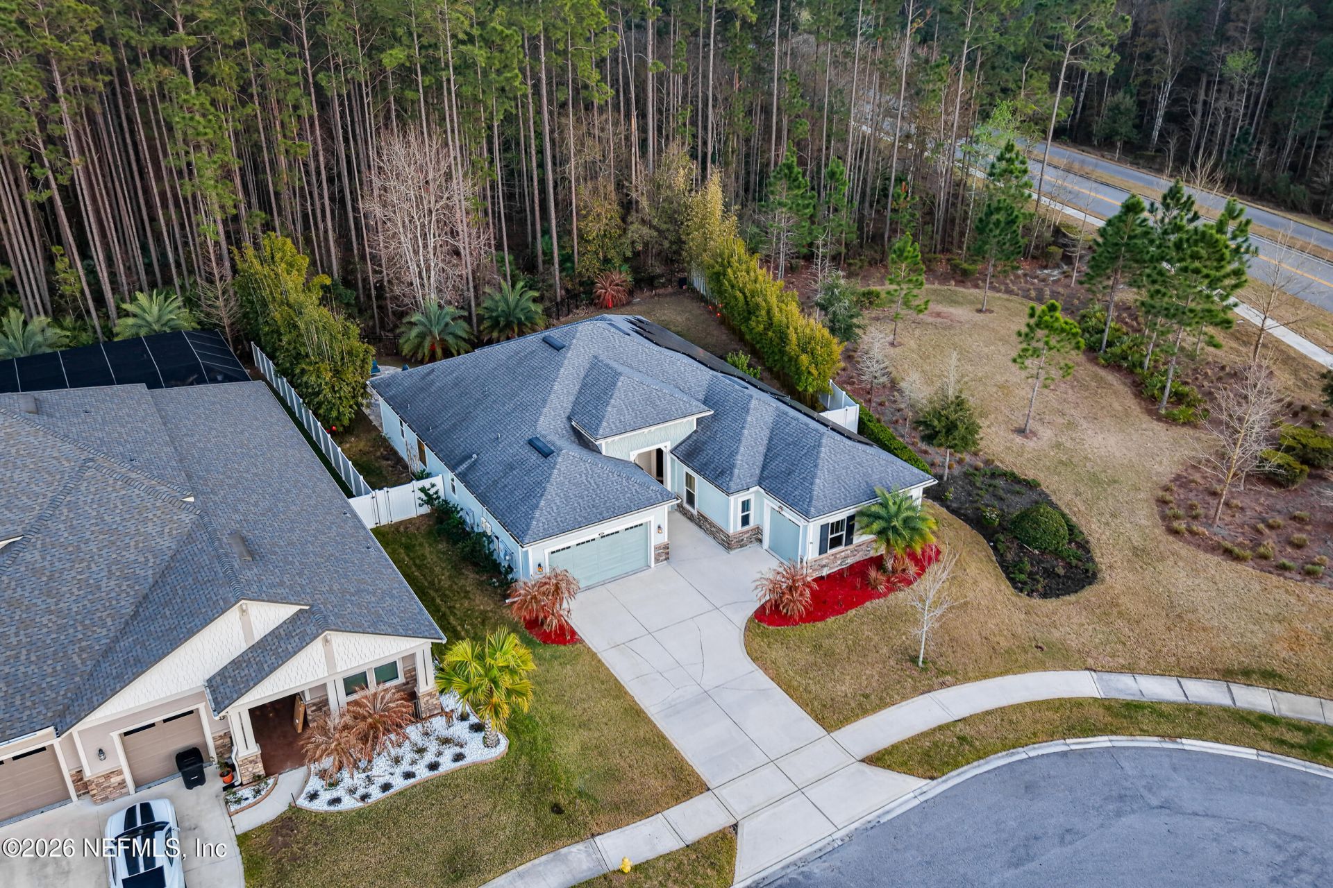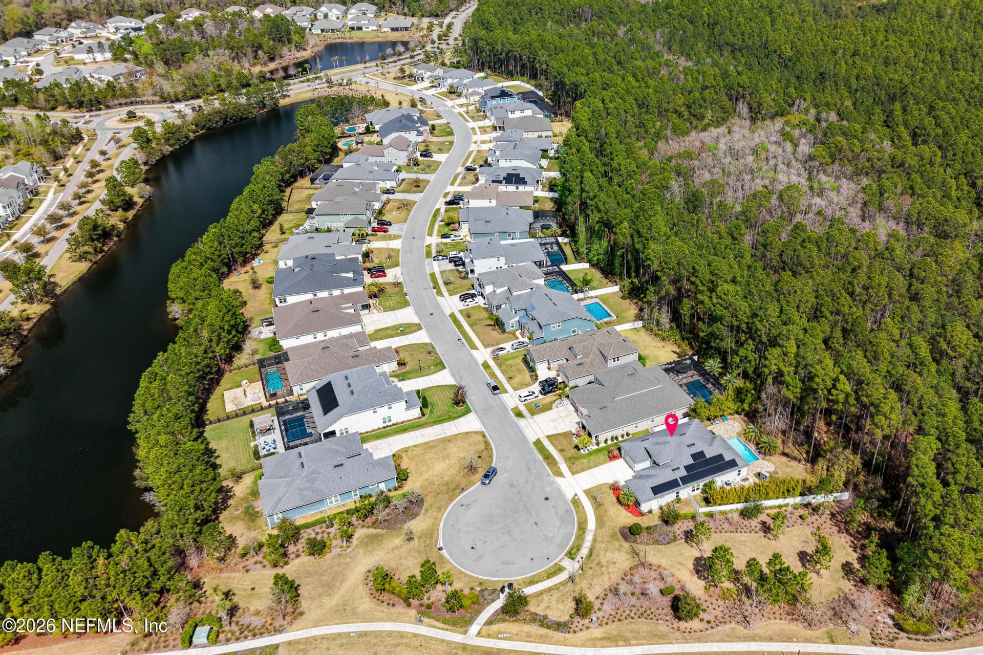 Welcome to 265 Twin Flower Place in RiverTown, offering a rare cul-de-sac setting with exceptional privacy. Positioned with open space to the right and a preserve backdrop, the fenced backyard creates a private, low-maintenance retreat surrounded by trees and bamboo. Enjoy outdoor living with a pool and paver sitting area, ideal for relaxing or entertaining. Inside, the open floor plan centers around a spacious kitchen with a large island and ceiling-height cabinetry, flowing into the main living areas. The home includes four bedrooms, a dedicated office, three and a half bathrooms, a three-car garage, and a spacious primary suite with two walk-in closets and separate vanities. Fully owned solar panels enhance efficiency and long-term value. RiverTown offers a resort-style lifestyle with a riverfront pool, caf? and bar, tennis and basketball courts, scenic trails, dog parks, and a lazy river- Creating a community where every day feels like a getaway.