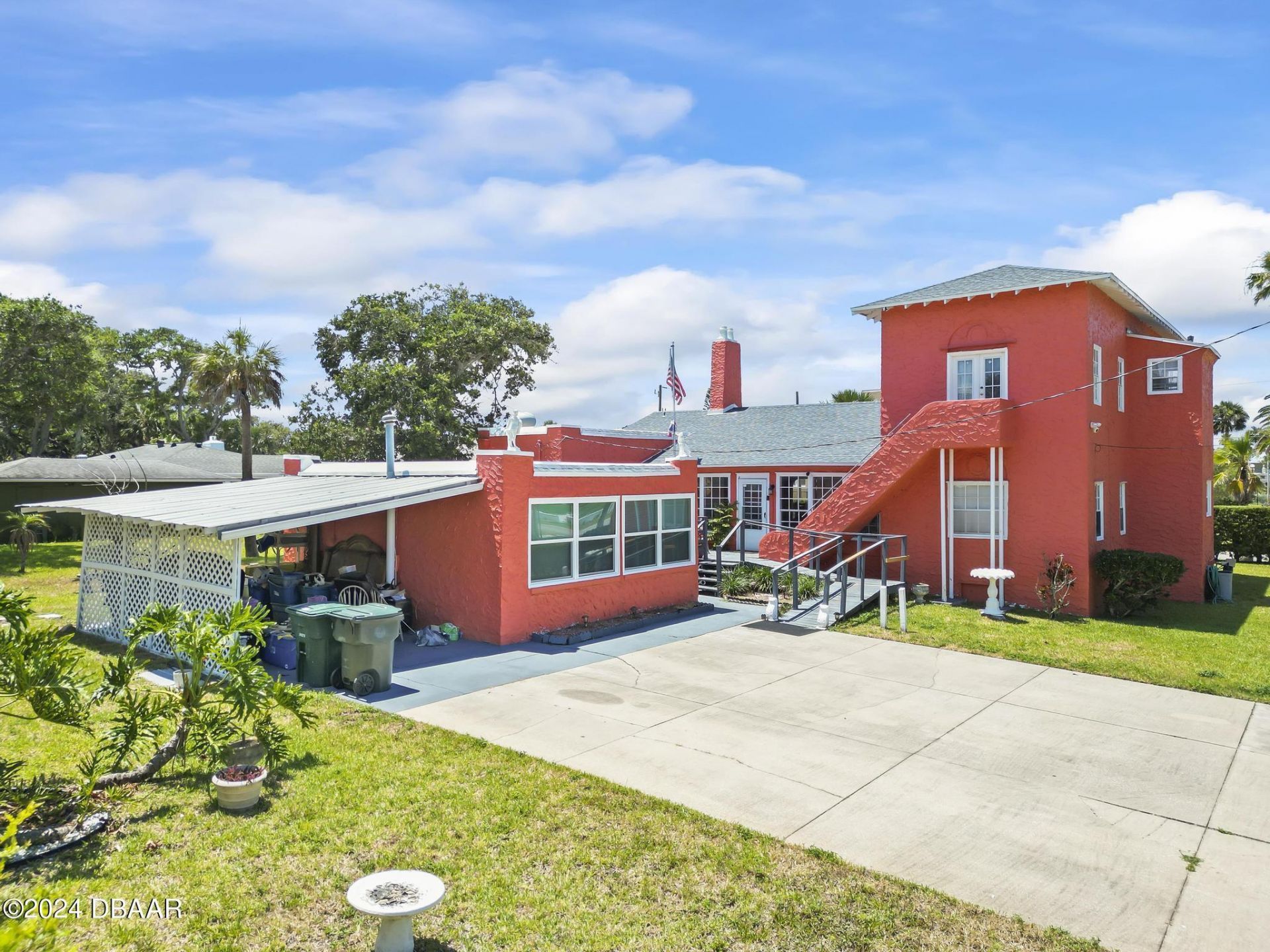 MOTIVATED SELLER | HISTORIC SPANISH ESTATE WITH INCOME POTENTIAL | STEPS TO THE BEACHRare opportunity to own one of Daytona Beach's most distinctive historic homes in the highly desirable Seabreeze District. Built in 1926 and positioned on a prominent corner lot just one block from the ocean and three blocks from the river, this character-filled Spanish Revival property offers timeless architecture, flexible living space, and outstanding investment potential.Featuring 5 bedrooms, 4 bathrooms, and approximately 2,425 square feet, this residence is rich with original charm including coved ceilings, arched details, hardwood flooring, natural light throughout, and a striking wood-burning fireplace that creates a grand focal point in the main living area. The primary home offers a versatile floor plan with spacious bedrooms, multiple living areas, formal dining space, and enclosed porches that expand the indoor living experience. French doors and outdoor entertaining areas create the perfect coastal lifestyle setting.What makes this property truly special is the additional living spaces. Included is a private upstairs 1-bedroom apartment with kitchenette and separate entrance, plus a detached studio apartment--ideal for long-term rental income, guests, multigenerational living, or a private workspace. Three electric meters already in place add convenience and flexibility.Recent improvements include roof and AC in 2020, updated paint, and flooring upgrades. The oversized driveway and covered parking provide room for multiple vehicles, boat, or recreational storage.Walk to the beach for sunrise, stroll to the river for sunset, and enjoy nearby restaurants, entertainment, shopping, and all the energy of beachside Daytona. Whether you are looking for a unique personal residence, income-producing property, or historic showpiece, this is a rare chance to secure location, character, and value.