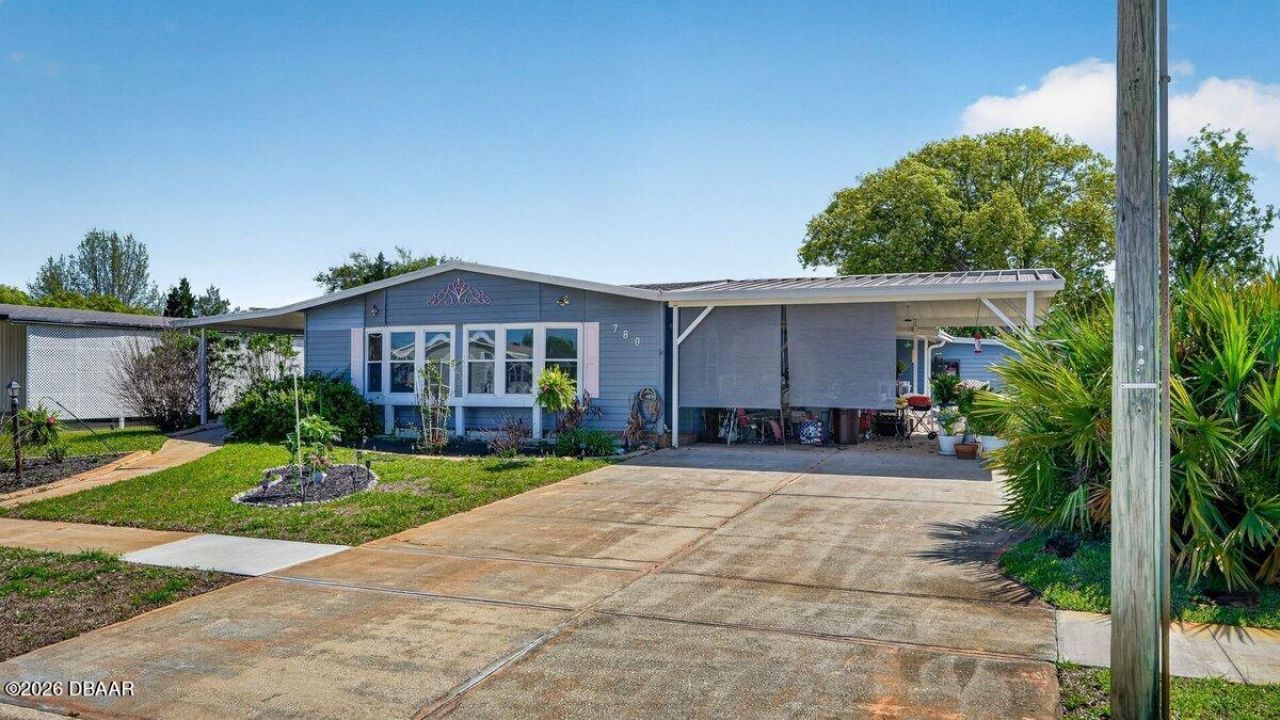 Discover a rare opportunity in Laurelwood Estates. A 55+ Community WITH NO LOT RENT. YOU OWN THE LAND, and it is a voluntary HOA. Featuring a 2021 roof and perfectly positioned at the end of a dead end street, this residence reveals an inviting, open layout just ten minutes from the coast and moments from the best of Port Orange shopping.The interior is designed for both comfort and utility, featuring a formal dining room and two expansive living areas, one of which is accented by elegant built in cabinetry. Recessed lighting throughout enhances the bright, airy atmosphere, while storage is a recurring theme with two dedicated linen closets for easy organization.The kitchen is a true standout for the culinary enthusiast, boasting a deep farmer's sink and a lighted walk in pantry. An abundance of cabinets surrounds the gourmet custom butcher block island, which is equipped with power on each end for added convenience. The spacious primary suite serves as a comfortable sanctuary, featuring a jetted garden tub, a separate shower, and a versatile space that can function as either a double closet or a dedicated computer nook. The guest bathroom has been tastefully updated with a modern sink, a new toilet, and a stylish glass backsplash.The exterior is anchored by a massive, fully equipped workshop featuring power, lighting, a sink, and a freezer. This outdoor oasis provides the perfect backdrop for the large, enclosed three season porch and sits within an oversized, fully fenced backyard shaded by mature trees and a variety of fruit trees. In addition to a security system, the property offers an oversized driveway and a three car carport, providing ample space for hosting game nights and visiting guests.Schedule your showing today to come take a look!