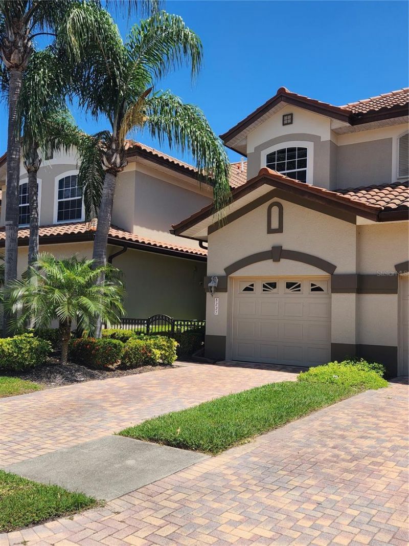 Professional photos coming soon. Welcome to Miramar at Lakewood Ranch Country Club, where maintenance-free living meets an exceptional Gulf Coast lifestyle. This ground-floor end unit at 8227 Miramar Way offers 2 bedrooms plus a den, 2 bathrooms, and 1,626 square feet of thoughtfully designed living space, enhanced by abundant natural light.From the moment you arrive, the courtyard entry and mature tropical landscaping create a warm and inviting first impression, complemented by the timeless beauty of the barrel tile roof. Inside, elegant features include crown molding throughout the main living area, arched doorways, and upgraded ceiling fans with integrated lighting and speakers.The kitchen has been enhanced with additional cabinetry, while recent updates provide peace of mind, including five hurricane impact windows installed in 2022, HVAC (2021), tankless water heater, Culligan water softener (2020), microwave (2023), dishwasher (2024), and a washer/dryer combo (2026). The primary suite offers a relaxing retreat with dual sinks, a garden tub, and a separate shower with built-in bench.Miramar residents enjoy low HOA fees and resort-style amenities, including a heated pool and spa, fitness center, and a scenic dock with gazebo-perfect for sunset views and bird watching.This gated community is conveniently located near Lakewood Ranch Main Street and Waterside, UTC shopping and dining, I-75, and an abundance of public and private golf courses, this home is also just 30-45 minutes from the world-renowned beaches of Siesta Key, Longboat Key, and Anna Maria Island. Whether you're seeking a primary residence, seasonal retreat, or investment opportunity, this home offers the perfect blend of comfort, convenience, and lifestyle.